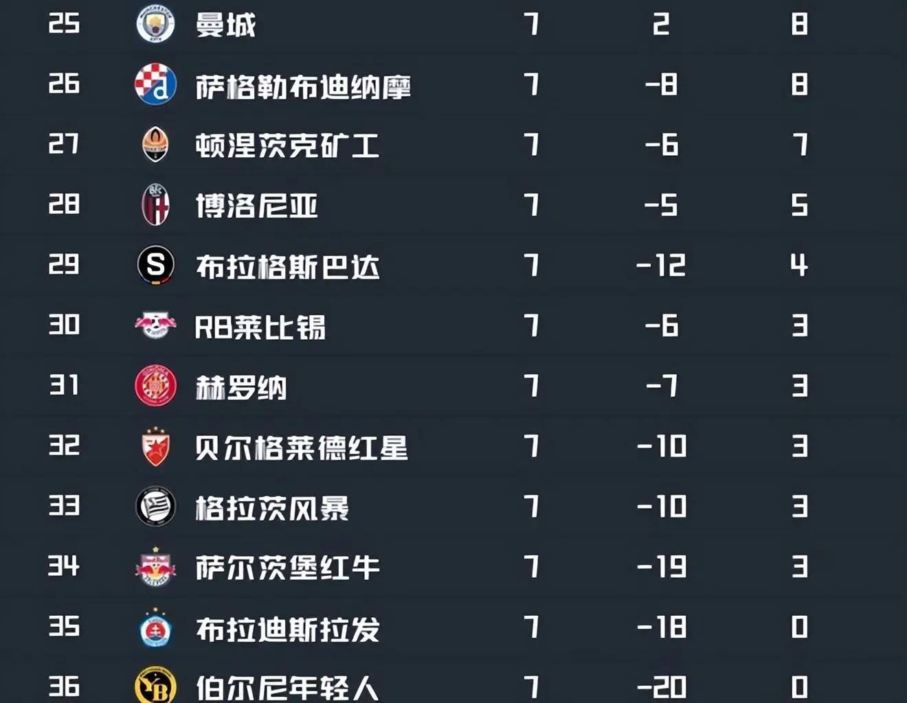 在所有豪门球队中,曼城的处境最为不利。这支身价高达12.3亿欧元的球队,在与巴黎圣日耳曼的比赛中以2-4的比分失利,排名一度跌至积分榜的第25位。这一成绩无疑让球迷们感到失望,也让球队面临着巨大的压力。如果曼城在最后一轮比赛中无法取得胜利,那么他们很可能面临被淘汰的命运。曼城的对手是布鲁日,这是一支实力不容小觑的球队。布鲁日目前排在积分榜的第20位,积分比曼城高出3分。从目前的情况来看,曼城并没有十足的把握能够击败布鲁日。