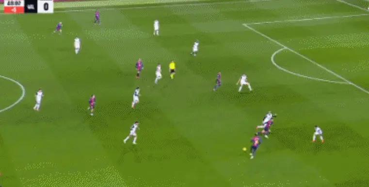其中,亚马尔送出的绝妙助攻发挥了一半作用,脚下盘带速度太快了,防守球员完全跟不上步伐,并且传中的精准度非常高,直接越过对方5名球员的头顶或者防守区。当然,这只是亚马尔非常普遍的一次传球。