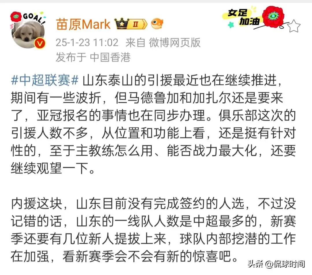 泰山队本赛季的外援引进基本尘埃落定,两名巴西外援分别是马德鲁加和加达尔,两名外援的位置,也正是泰山队急需要的后腰和中后卫的位置。新赛季泰山队终于配齐五名外援,球队还是有一定的竞争力,虽然争夺冠军的可能性不大,但至少要争夺一下亚冠资格。