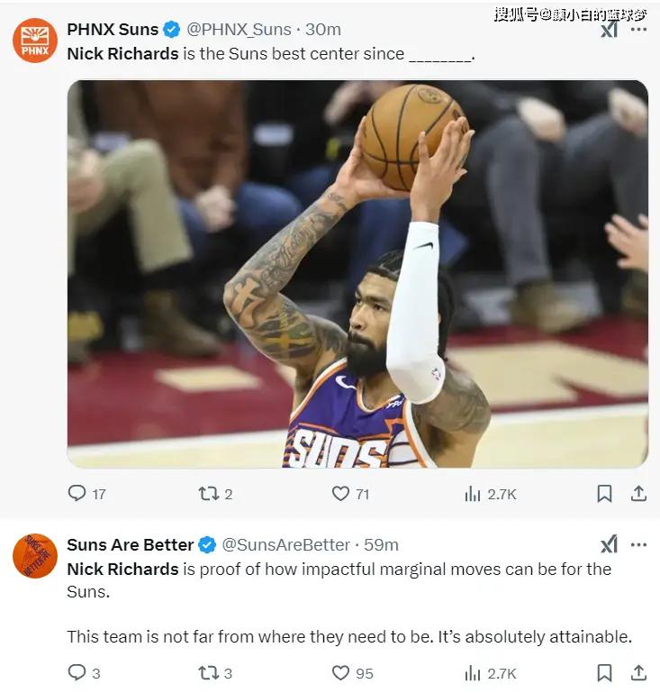 太阳媒体:理查兹证明了他的运动能力对太阳的影响有多大,这支球队太需要这样的五号位,他能在这里取得成功。太阳最佳的中锋是他。