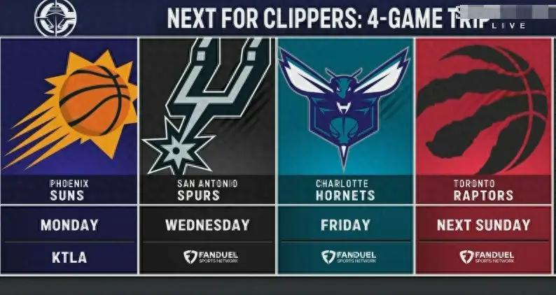 接下来快船的对手包括太阳、马刺、黄蜂和猛龙。