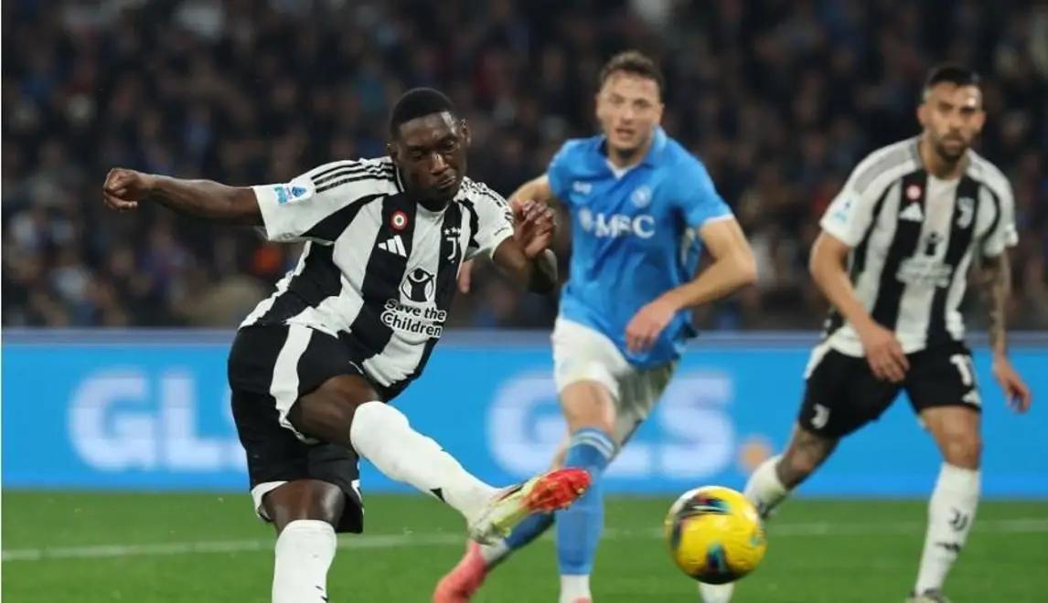 然而,在上半场即将结束之际,新援穆阿尼迅速证明了自己的价值。这位刚刚租借加盟的球员在禁区内展现出了非凡的适应能力。伊尔迪兹从右路送出精准的传中,瞬间在那不勒斯禁区内制造了一片混乱。双方球员在此展开激烈拼抢,最终皮球滚到了穆阿尼脚下。他毫不迟疑地转身抽射,皮球应声入网。这个进球让尤文图斯带着1-0的优势,结束了上半场的较量。