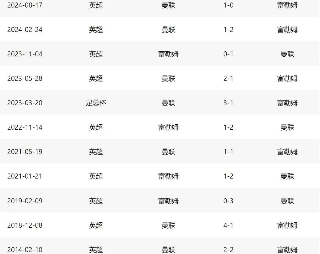 曼联与富勒姆的历史交锋中,有一项引人注目的特点:在老特拉福德的主场,曼联偶尔会失手——比如1998年以1-2告负,2021年则以1-1握手言和。然而,当他们远赴克拉文农场作客时,曼联的表现却异常稳健——自从2009年在那里遭遇两次失利(0-2,0-3)之后,曼联在最近八次客场挑战中取得了7胜1平的佳绩。