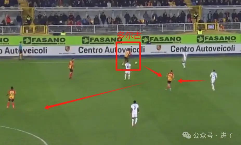 多尔古的第一次失误发生在第38分钟,当时莱切以0比1落后,他在本方半场左侧边线得球,面对国米球员的进一步逼近,多尔古试图与队友进行撞墙式配合。