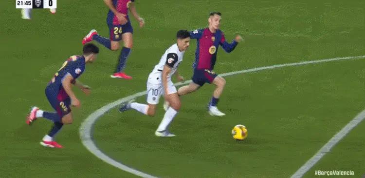 比赛上半场第21分钟,阿尔梅达在禁区内疑似被卡萨多铲倒在地,瓦伦西亚球员认为应判点球,但主裁判未予理会。