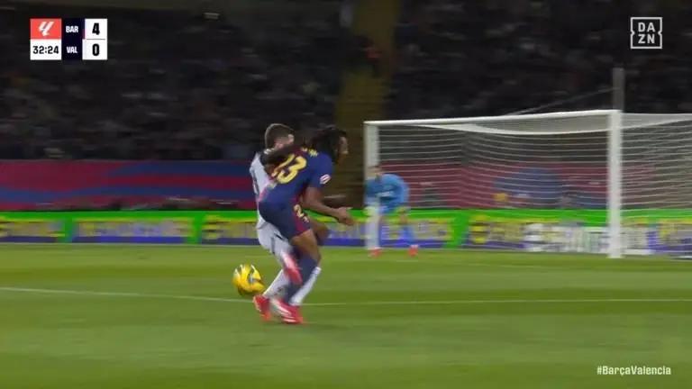比赛第32分钟,瓦伦西亚获得了一次点球机会,但VAR介入后,主裁判索托-格拉多通过回放发现,此前加亚对孔德有犯规动作,因此取消了点球判罚。