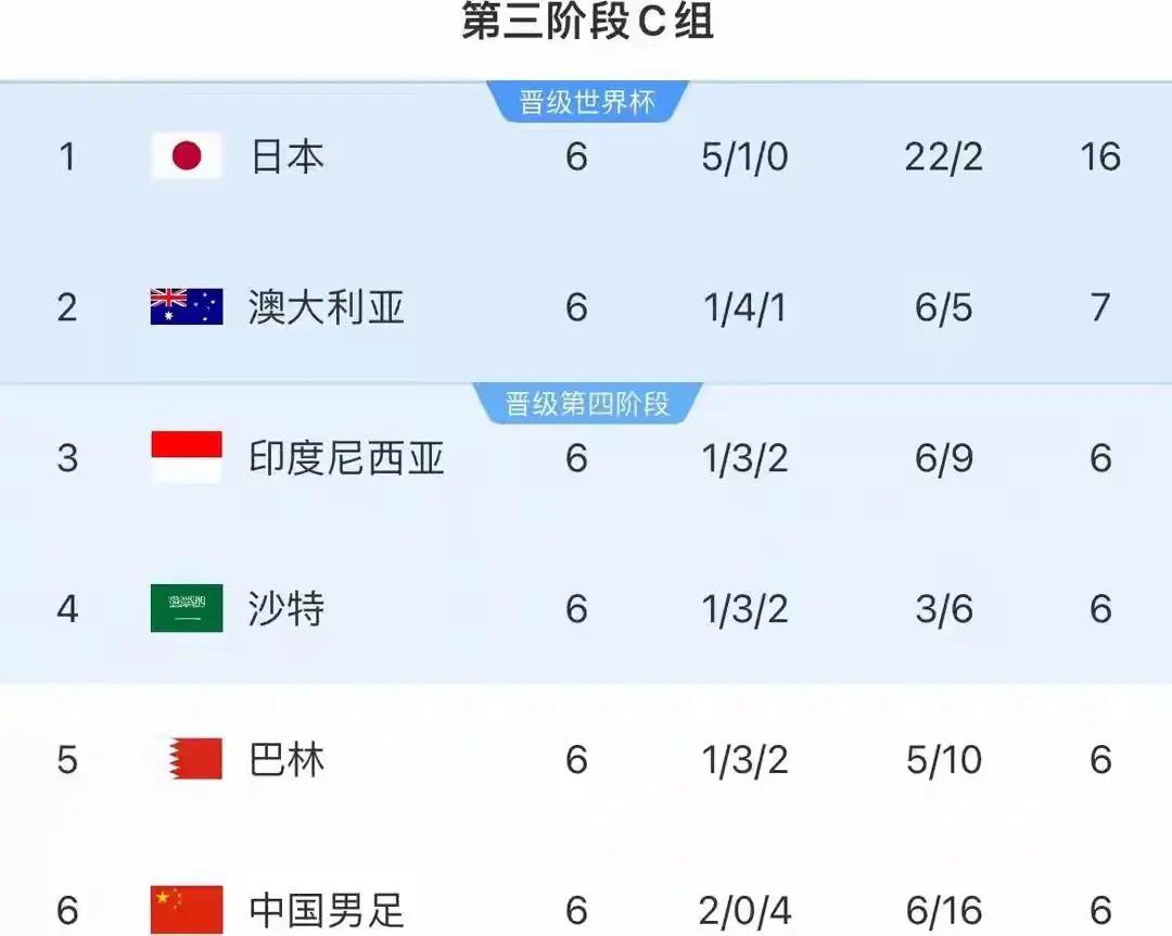 值得一提的是,世预赛亚洲区18强赛已经进行了六轮比赛,中国男足取得2胜4负的成绩,积6分,目前排名小组垫底,但是距离小组第二的澳大利亚队也只有1分的差距而已,保留了晋级希望。