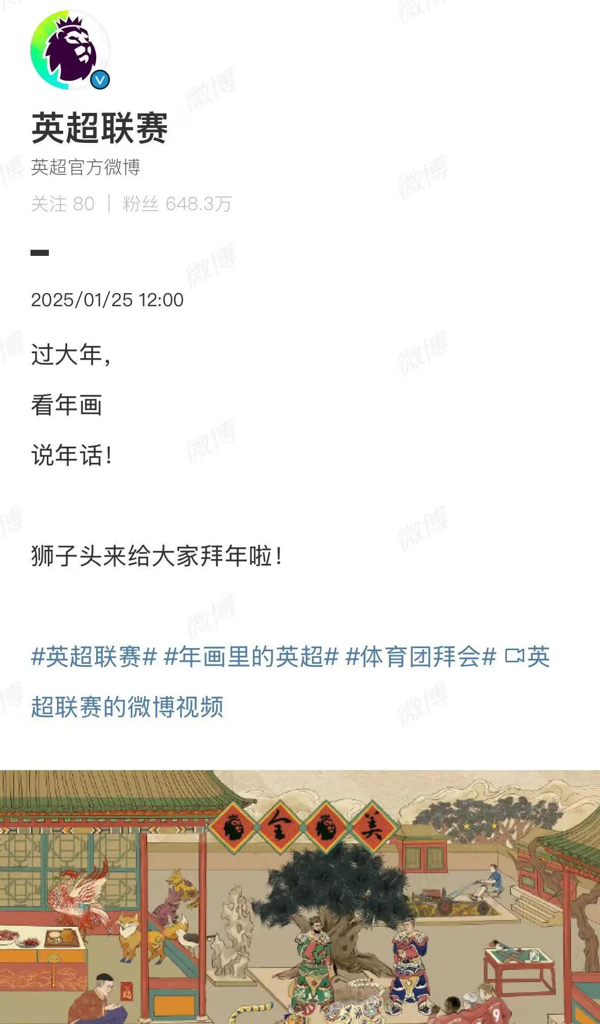 英超的不少球队也在社交媒体上发布了球员们录制的春节祝福视频。视频中,球员们用不太流利但充满诚意的中文,向中国球迷拜年,感谢中国球迷一直以来的支持。一些球队主场还在现场布置了中国结、红灯笼等装饰,星星点点的红色元素,让现场观众感受到了春节的独特氛围。