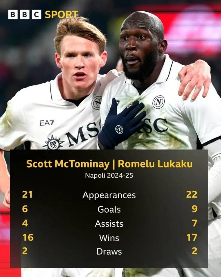 直播吧1月27日讯 在本轮意甲那不勒斯2-1击败尤文的比赛中,麦克托米奈造点,卢卡库点射打进反超进球。