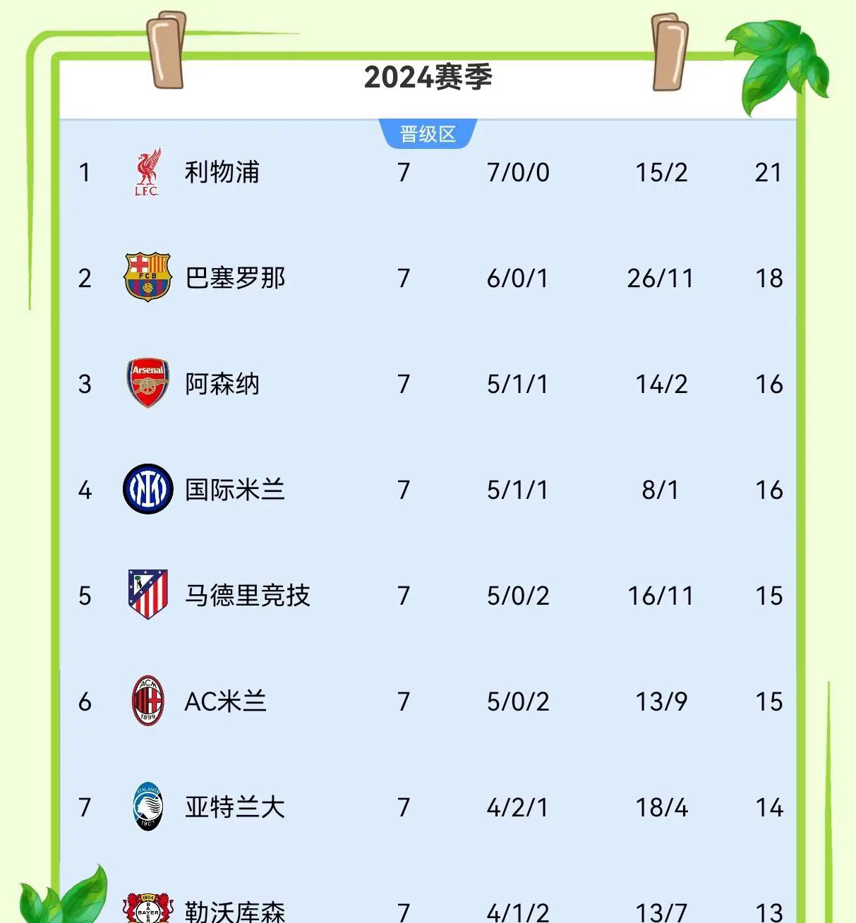 新春佳节之际,欧冠联赛迎来了出线收官大战,共有36支球队争夺着8个16强名额。目前已确定的席位中,利物浦和巴塞罗那各自锁定了一个16强名额,而最后一轮比赛将决出剩余6个直接晋级名额的归属。在历经7轮激烈角逐后,积分榜前八排名如下: