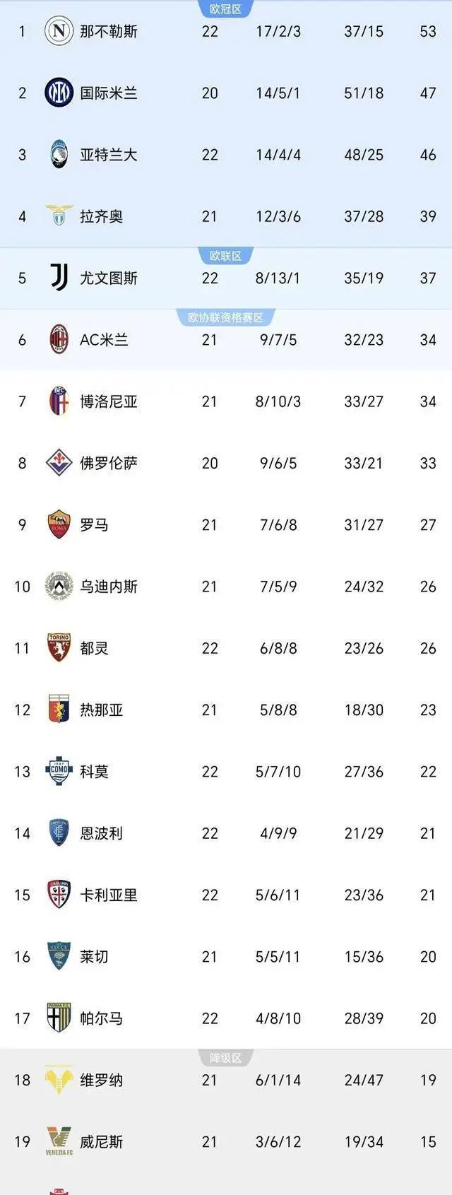 米兰绝杀,尤文被逆转,意甲积分榜也发生了变化。