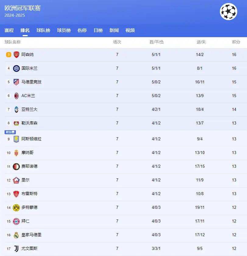 值得一提的是,当前积分低于亚特兰大,在最后一轮有望反超的球队,包括了勒沃库森、阿斯顿维拉、摩纳哥、费耶诺德、里尔、布雷斯特、多特蒙德、拜仁、皇马和尤文等。