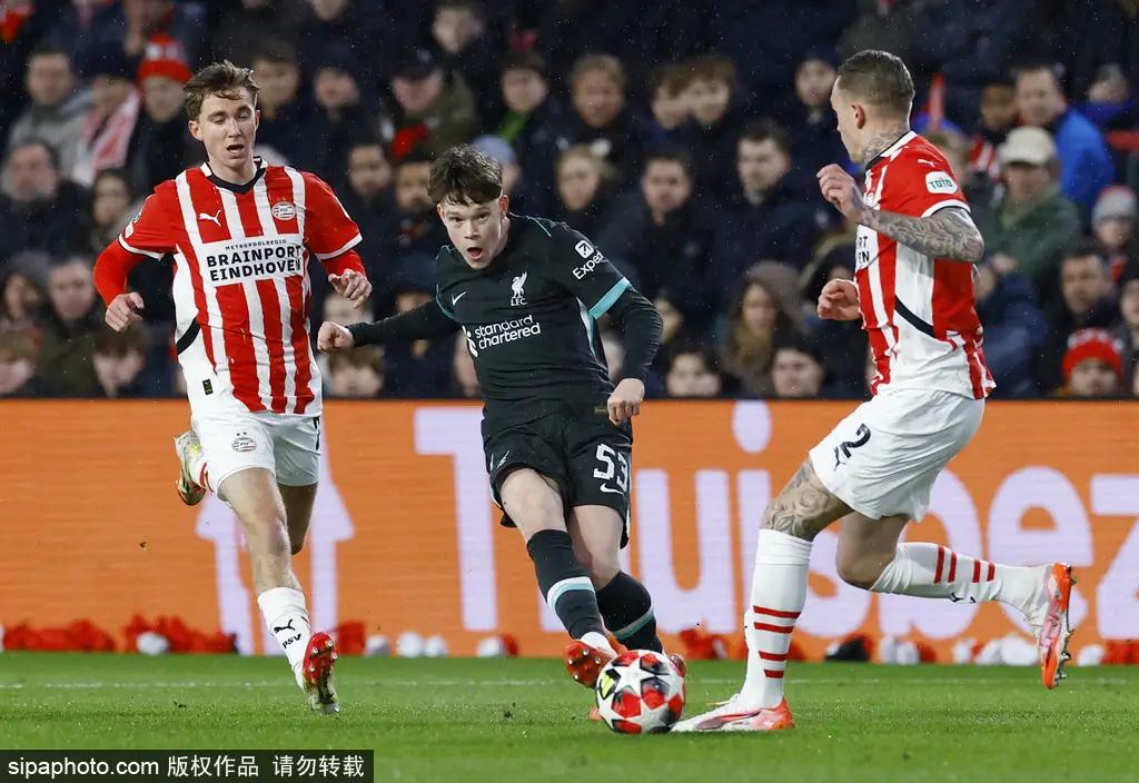 上半场结束时,利物浦客场2-3落后埃因霍温进入中场休息。