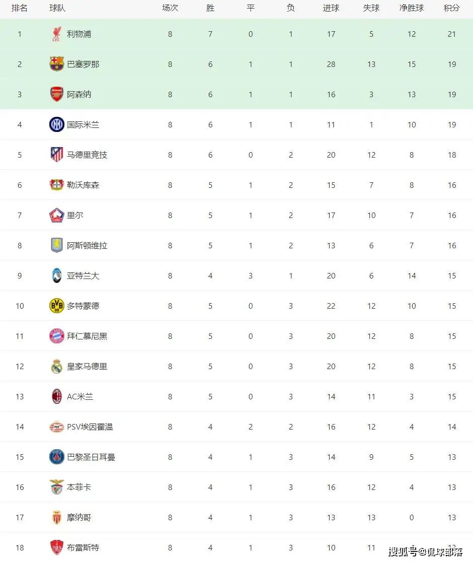 北京时间1月30日凌晨,欧冠联赛阶段第8轮全面结束,利物浦、巴萨、阿森纳、国米、马竞、勒沃库森、里尔、维拉锁定积分榜前八,直通十六强阶段。其中,英超3队最多、西甲2队紧随其后,德甲、意甲、法甲各1队,都是五大联赛的球队,最大意外当属里尔,后者力压米兰、亚特兰大两支意甲球队,压哨直接晋级。