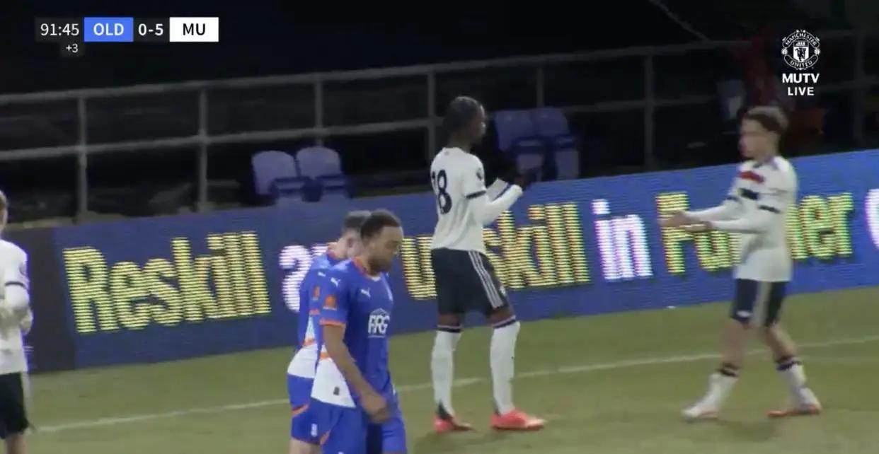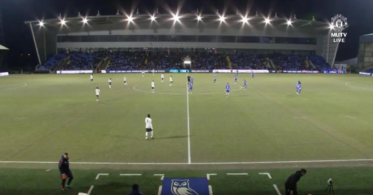 在一场比赛中,曼联派出了塞古科内和麦卡利斯特组成的双后腰阵容,夏普和马瑟分别出任两侧边锋,奇多奥比马丁则继续首发。开场阶段,门将哈里森开启了一记长传,右边锋夏普错失破门良机。接着奥德汉姆效仿此举,直接进攻曼联后卫库孔基,但未能得分,上半场双方难分伯仲。曼联并未取得明显优势,双方均有机会,中场战术难以突破。曼联门将哈里森做出了一次扑救,表现出色,而库孔基则在某些时刻显露疲态。下半场对手派上U18球员,库孔基逐渐恢复状态。