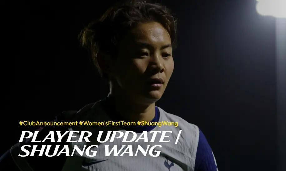 热刺女足在官方公告中表示:我们已就王霜永久转会至武汉车谷江大足球俱乐部达成一致。
