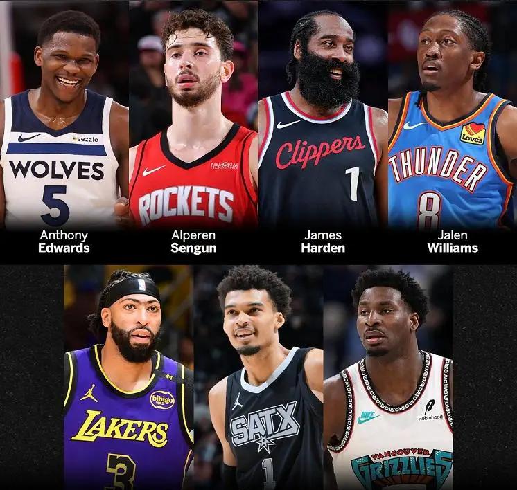西部替补阵容包括浓眉哥、哈登、爱德华兹、贾伦杰克逊、申京、杰伦威廉姆斯和文班亚马。马刺核心文班亚马首次入选全明星,湖人核心浓眉哥安东尼戴维斯毫无悬念入围,场均交出25.7分、11.9个篮板、3.4次助攻、2.1个封盖和1.3次抢断的全面数据。