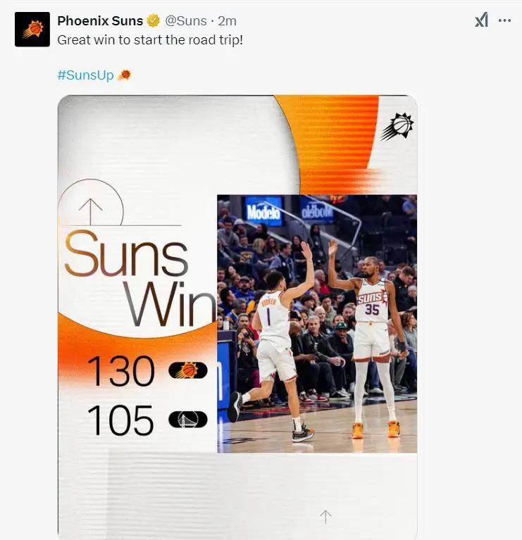 经过一波高效的表现,杜兰特被一些美国媒体誉为“GOAT”(最伟大的球员之一)。末节比赛中,杜兰特先选择休息,布克和比尔带领球队继续扩大领先优势,最终赢得比赛。科尔在比赛还剩5分57秒时替换下库里,放弃了比赛,杜兰特也因此没有重新登场,全场比赛只出战了29分钟。