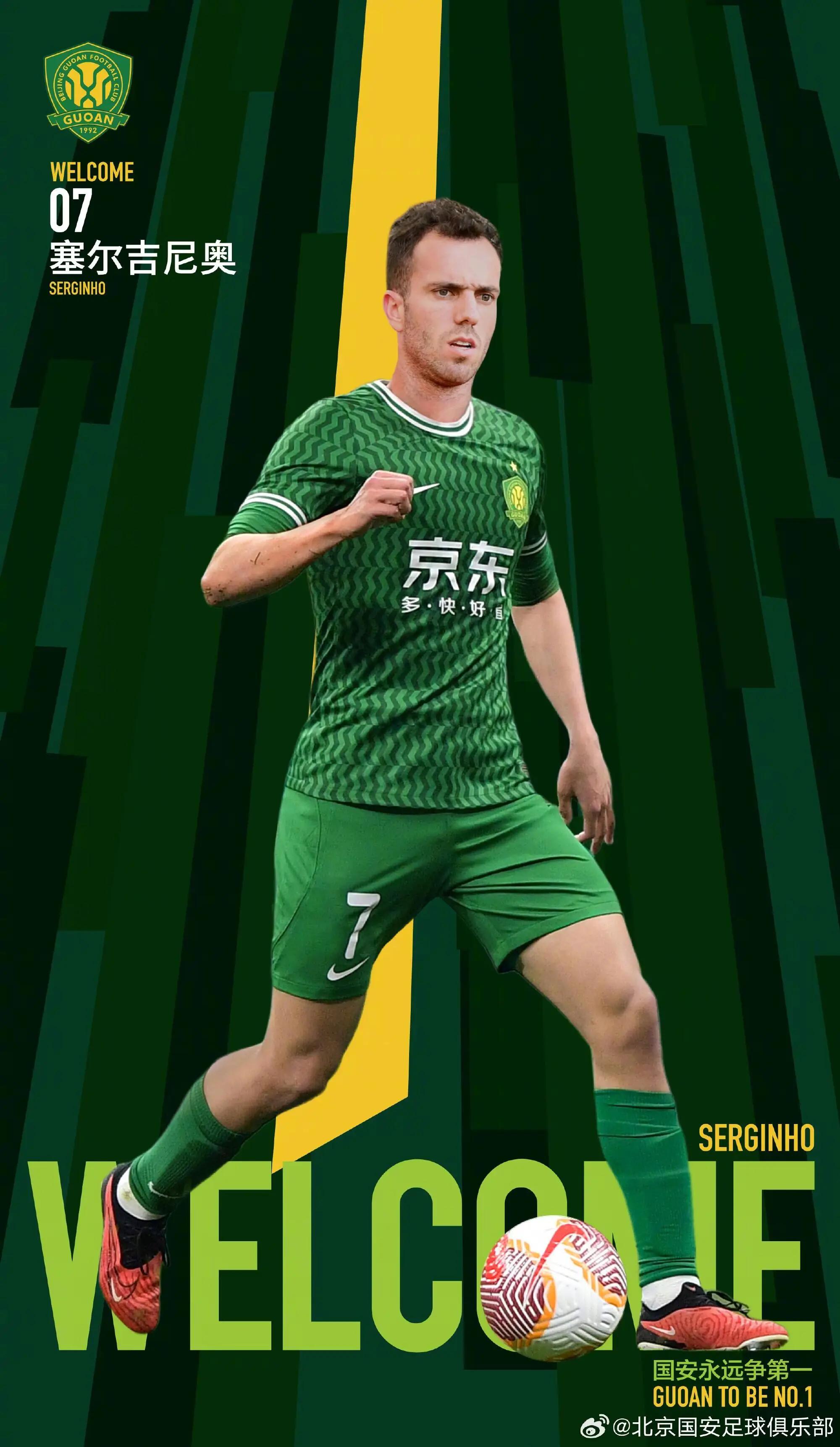 塞尔吉尼奥(Sérgio Antônio Soler de Oliveira Junior)正式加盟北京国安足球俱乐部,他将身披7号球衣,代表北京国安出战本赛季中超联赛、亚冠联赛、足协杯等各项赛事。