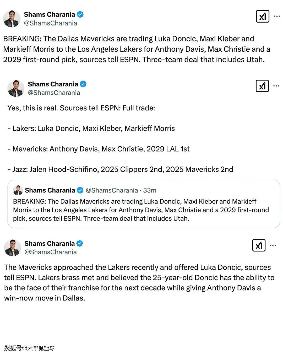 当这个消息一出来的时候,不少球迷媒体都还在质疑这个信息的真实性,甚至认为Shams Charania的账号被盗窃了。但是,名记Shams Charania在节目中明确表示,自己的账号没有被盗窃,这件事是真的。而且,这笔交易已经得到了各种消息来源的证实。