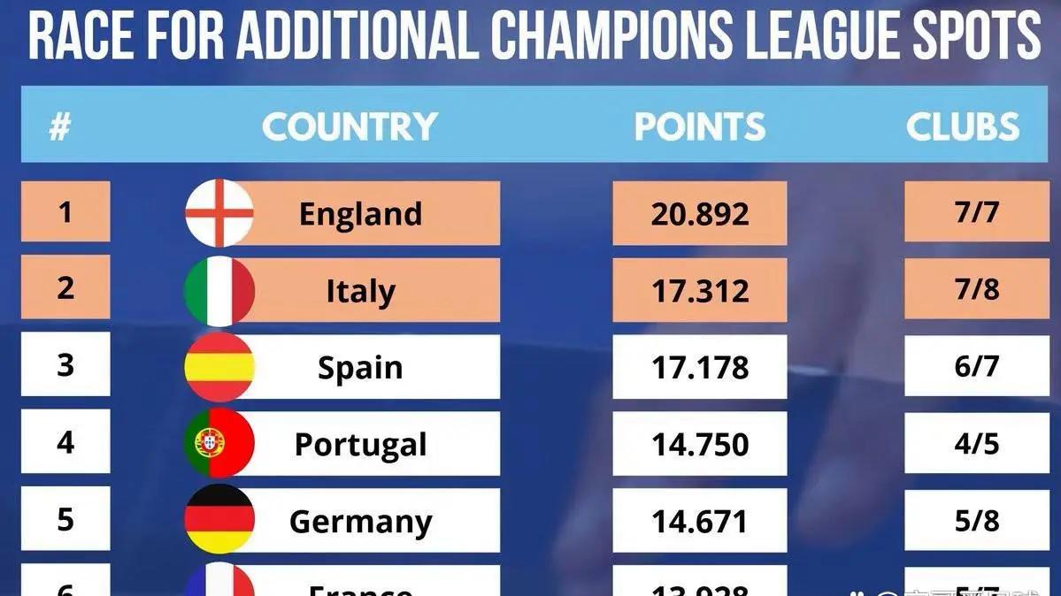 英超:7支球队参加欧战全部保留席位,包括2支欧冠、1支欧联杯和1支欧协联球队。其中,利物浦、阿森纳和阿斯顿维拉作为欧冠参赛队以小组前八名身份直接晋级16强,曼城表现不佳,将以第22名身份参加欧冠淘汰赛附加赛,对手或将是皇马或拜仁。参加欧联杯的曼联和热刺以第三和第四名成绩成功晋级,而参加欧协联杯的切尔西则全胜晋级。英超7队中有6队直接晋级,还有1队参加淘汰赛附加赛,积累了20.892分的欧战积分,遥遥领先其他联赛。