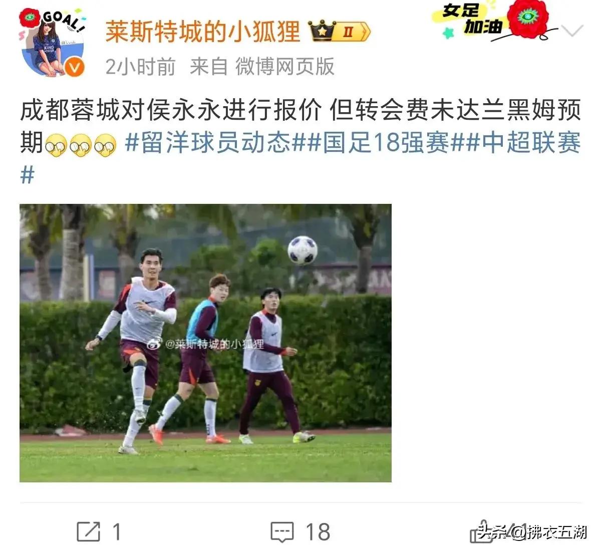但因侯永永自身实力不够,成都蓉城对一位替补级别的球员并不感冒。开出的价格甚至没能满足兰黑姆的转会费要求,更别说满足侯永永了。
