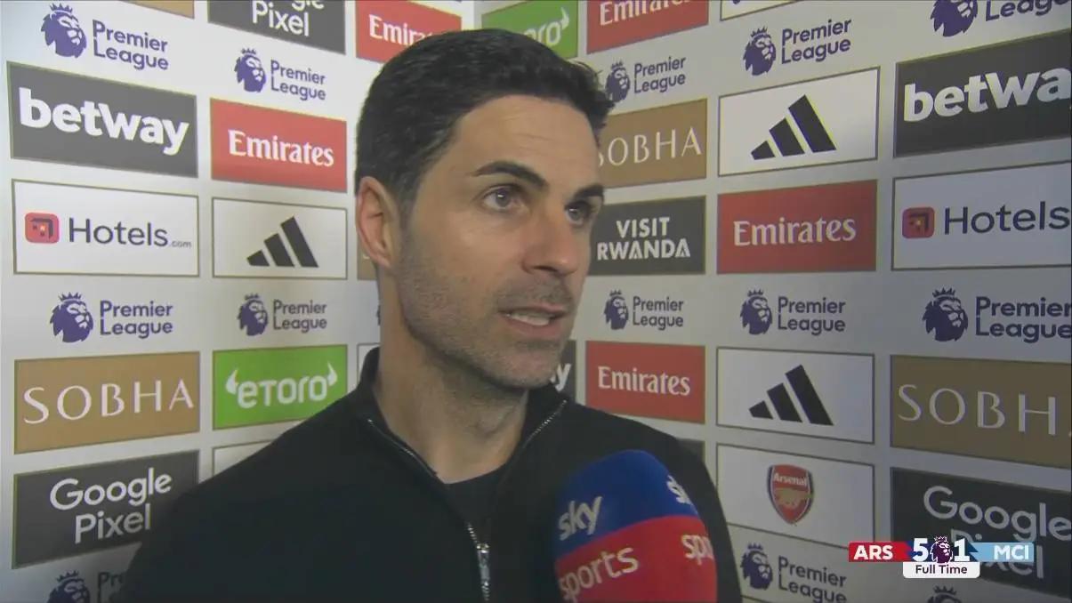 直播吧02月03日讯 英超焦点战,阿森纳5-1血洗曼城。赛后阿森纳主帅阿尔特塔接受了BBC和天空体育的采访,谈论了本场比赛的一些话题。