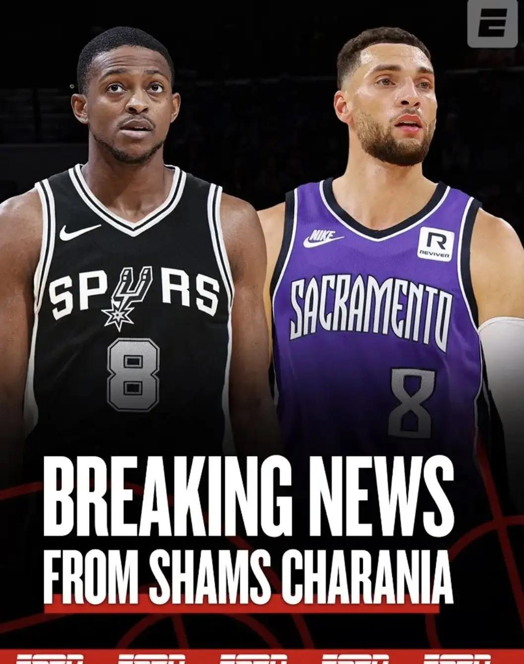 据ESPN名记Shams最新报道称,萨克拉门托国王、圣安东尼奥马刺、芝加哥公牛刚刚达成了一笔多方交易,国王将福克斯送去马刺,公牛扎克拉文加盟国王,国王许尔特则去到公牛。
