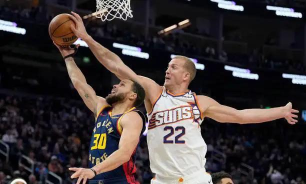 值得关注的是太阳替补中锋梅森-普拉姆利在这场比赛中的表现。普拉姆利出场15分01秒,投篮5中4,罚球3中2,拿下10分6篮板3助攻4盖帽,并有2次犯规,正负值为+1。尽管出场时间不长,但他展现出了全面的个人能力。普拉姆利在进攻端表现出色,特别擅长篮下得分,难以被对手限制。同时,在传球和策应方面也表现突出。防守端,他的篮板保护能力突出,护筐效果显著。总的来看,普拉姆利在攻防两端都表现出色,完全压制了勇士内线。