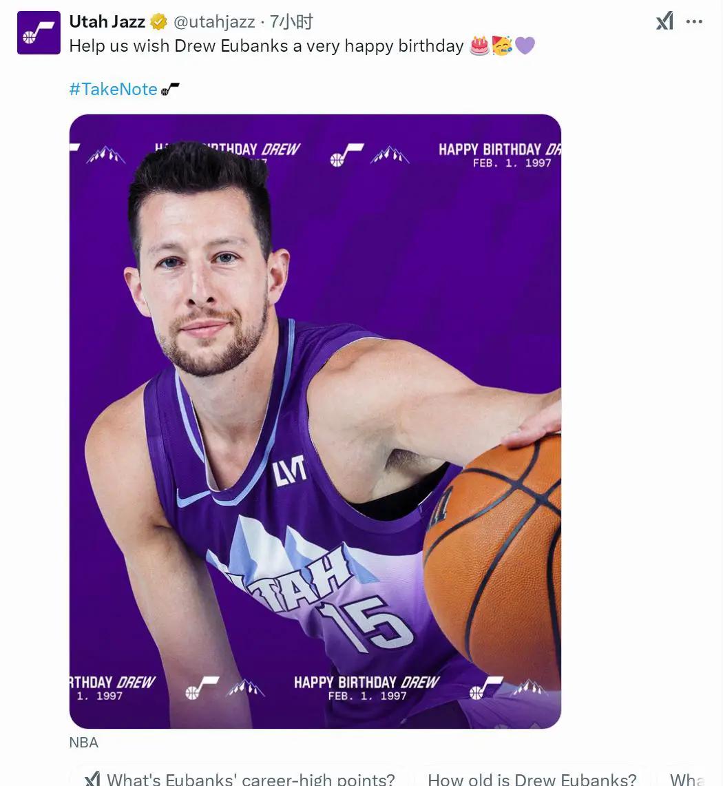 由于班巴表现不如人意,快船一直在寻找祖巴茨的替补大前锋,而现在尤班克斯便是他们的答案!恰逢尤班克斯28岁生日的当天,交易前半小时,爵士官方推特还特意祝他生日快乐。交易达成后,快船官方又发推送祝贺他生日快乐。