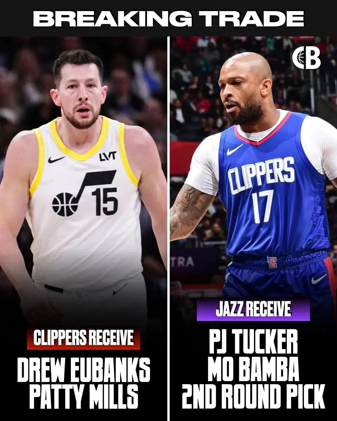 北京时间2月2日凌晨,洛杉矶快船官方宣布:将PJ-塔克、班巴、一个次轮签送到爵士,3换2交易得到米尔斯和尤班克斯。此外,快船还送给爵士一笔现金,具体金额未知。交易达成之后,快船低于奢侈税线400万美元,静待买断市场。