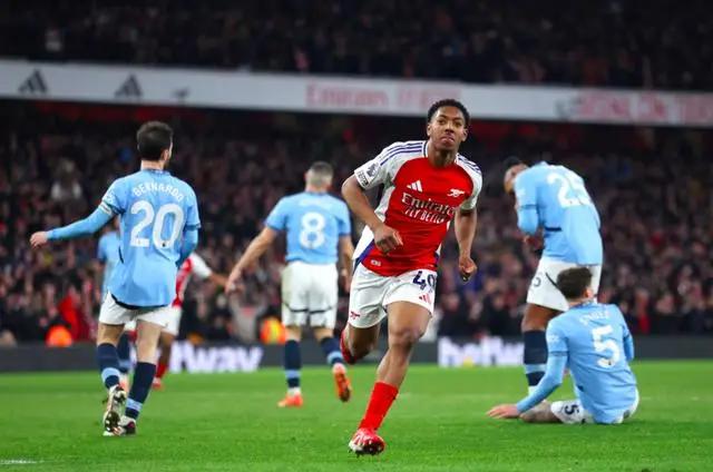 第93分钟,恩瓦内里锦上添花。最终,阿森纳5-1大胜曼城,联赛14轮不败。