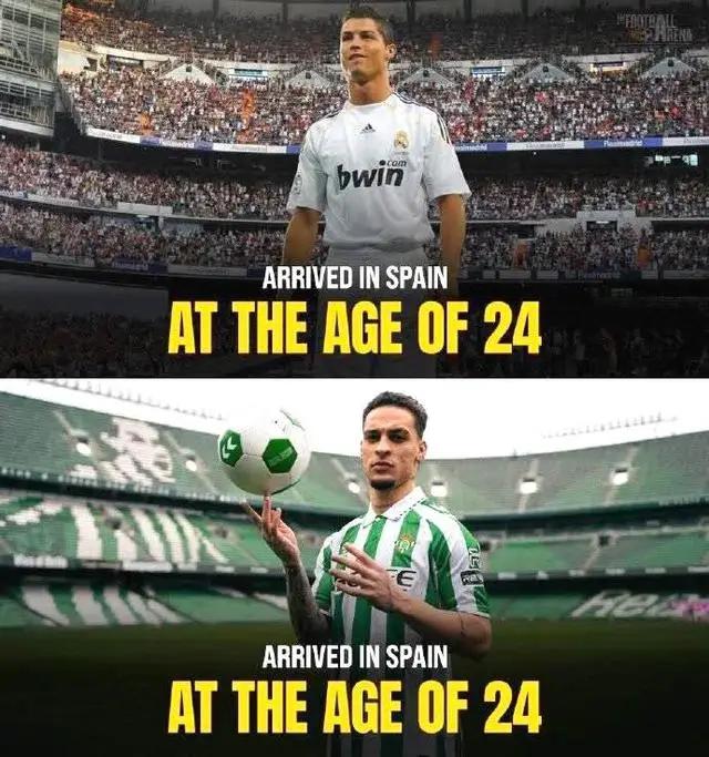 此情此景何其相似,上一位在24岁从英超曼联来到西甲的球员,在西班牙足坛收获了球迷的瞩目。没错,就是当年登陆伯纳乌的C罗!