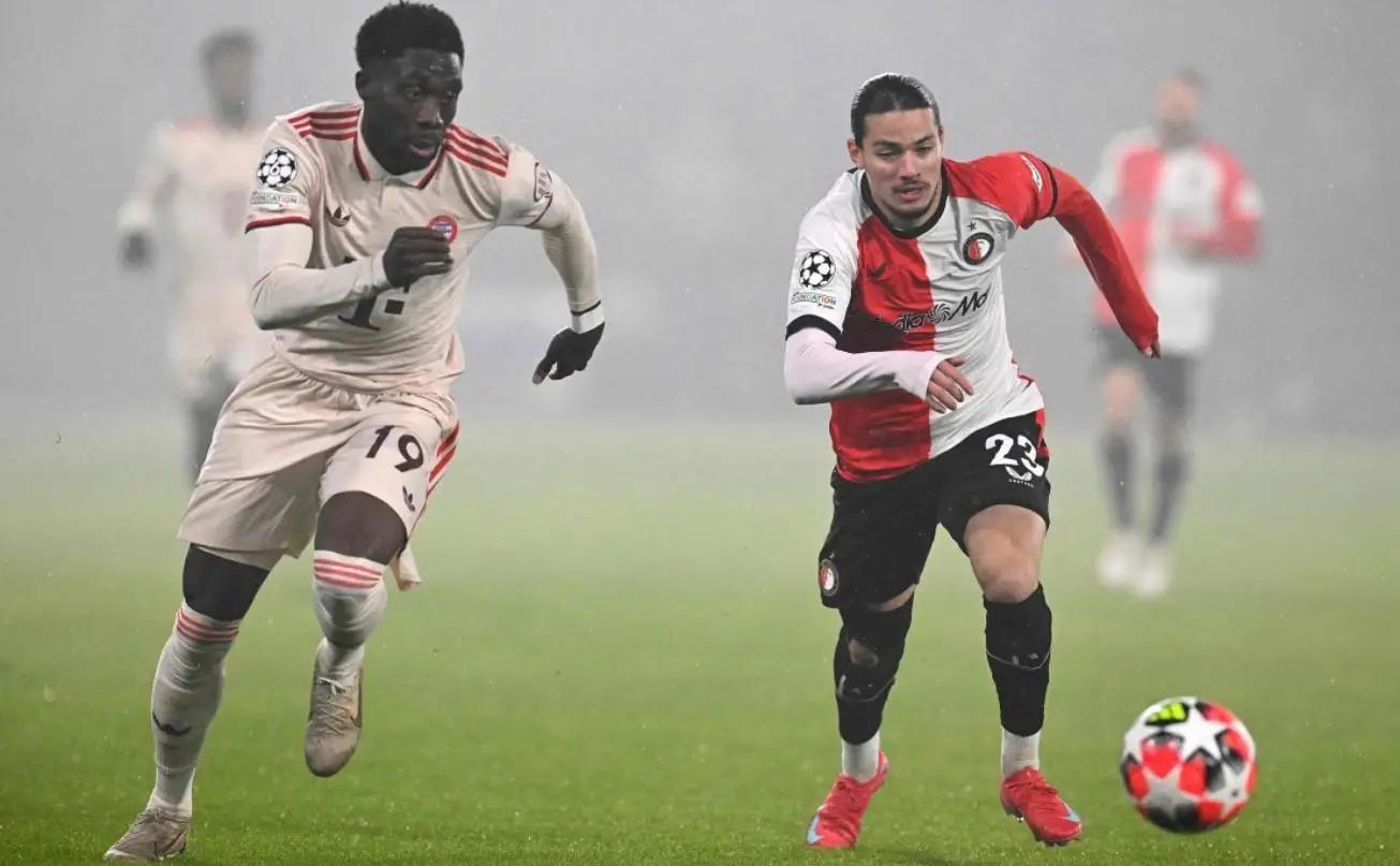 然而,足球的魅力就在于它的不确定性。费耶诺德,这支来自荷甲的球队,成为了拜仁慕尼黑这场噩梦的制造者。比赛一开始,拜仁慕尼黑就展现出了强大的进攻欲望,球员们在场上积极奔跑,试图掌控比赛的节奏。但是,在第,21,分钟,场上局势发生了戏剧性的变化。拜仁慕尼黑的后防线上,韩国中卫金玟哉出现了严重的失误。在一次后场的高空球争夺中,金玟哉对落点的判断出现了偏差,他就那样眼睁睁地看着费耶诺德的希门尼斯在自己面前高高跃起,然后以一记势大力沉的劲射,攻破了拜仁慕尼黑的球门。那一刻,拜仁慕尼黑的球迷们都惊呆了,他们不敢相信自己的眼睛,球队的后防竟然在如此关键的时刻出现了这样的漏洞。而场上的拜仁慕尼黑球员们,也仿佛被这突如其来的失球打懵了,他们的脸上写满了惊讶和懊恼。