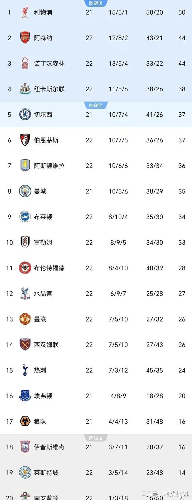 随着本轮比赛结束,英超格局发生较大变化!曼联、热刺这两支豪门球队现在已经沦落到了需要保级的地步,而诺丁汉森林成为本赛季最大的黑马,现在与阿森纳同积44分,紧追榜首利物浦,仍有争冠的可能!