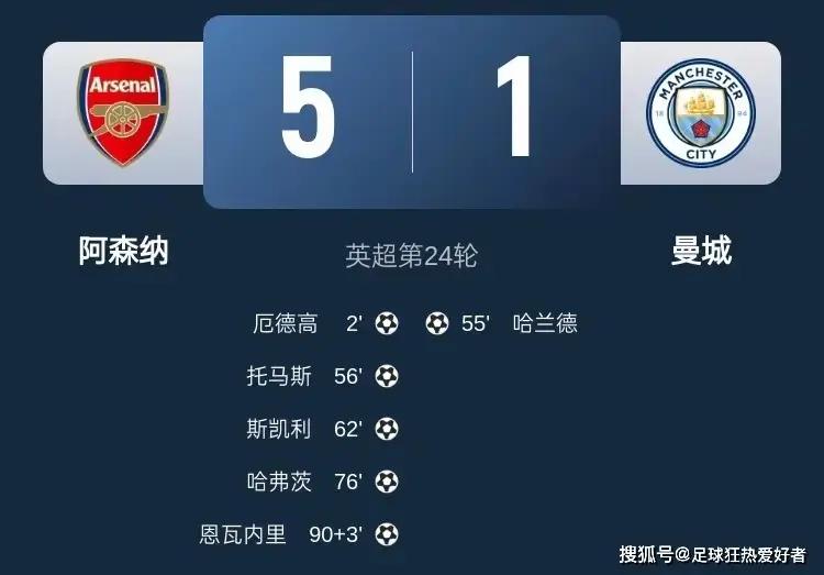 太残忍了!英超,曼城1-5阿森纳,本场比赛曼城惨败三大因素