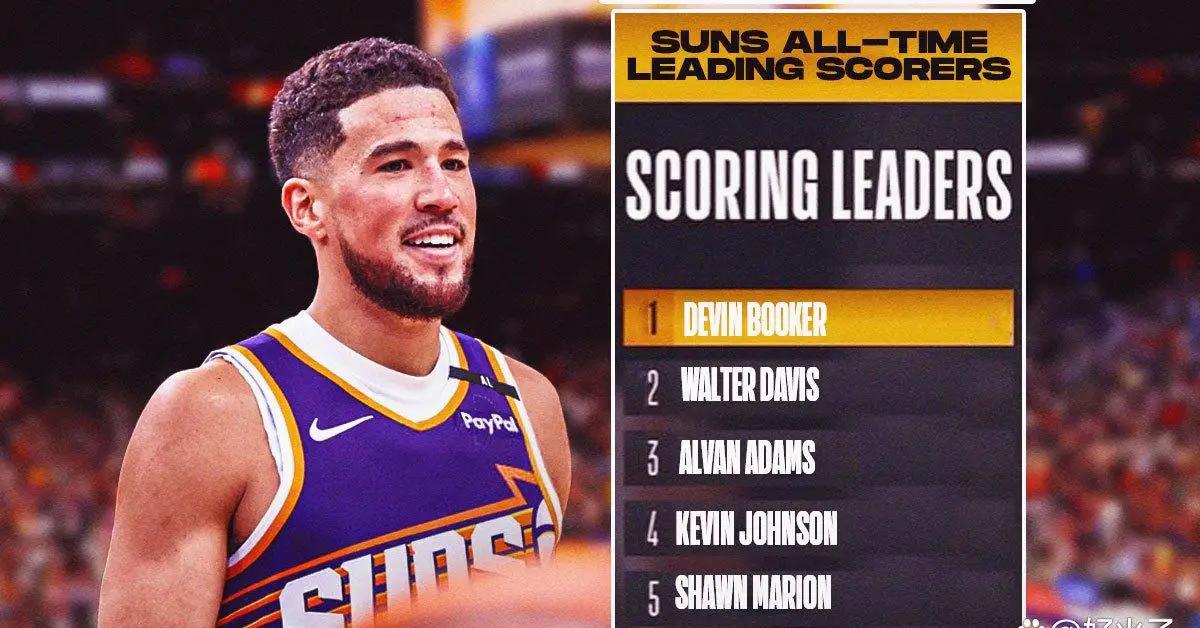 在周一对阵波特兰开拓者的比赛中,德文·布克正式创造了菲尼克斯太阳队的历史。以获得第23分,他超越了沃尔特·戴维斯保持的15,666分纪录,成为太阳队历史得分王。进入联盟的第九个赛季后,布克打破了许多得分纪录,累积了202场比赛得分超过30分,位列历史上第10位实现此壮举的得分后卫之列。