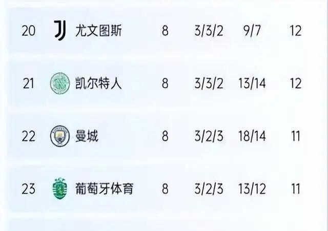 曼城,那个在英超里横冲直撞的家伙,居然排到22名!