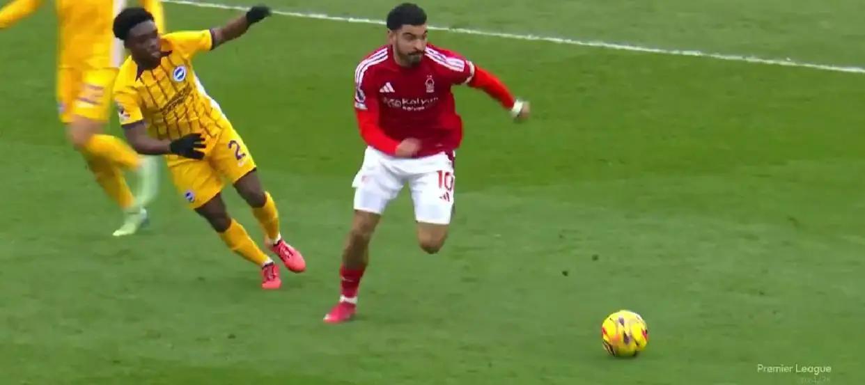 第11分钟,诺丁汉森林通过快速反击进球,源自布莱顿的防守失误。吉布斯·怀特传球时,邓克不慎自摆乌龙。