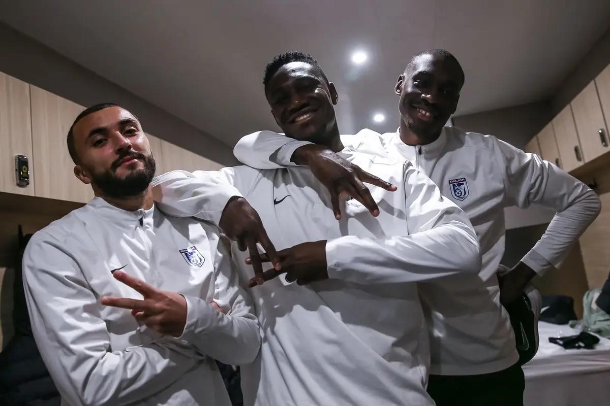 大连英博3名新外援在更衣室合影,从左向右依次为:可以胜任中前场多个位置的拉布亚德,前锋马莱莱,中卫马马杜。三位新援都比了一个手势,谁给翻译一下,这是啥意思?