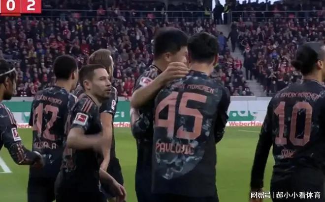 第37分钟,穆夏拉停区内倒地,裁判对此没有表示;第54分钟,拜仁再下一城!韩国中后卫金玟哉头球破门!拜仁2-0弗赖堡!第68分钟,扳回一球!金特尔头球破门!弗赖堡1-2拜仁!第76分钟,穆夏拉带球反击被堂安律踢倒,裁判出示黄牌警告,最终拜仁2-1战胜弗赖堡拿下三分继续领跑德甲!