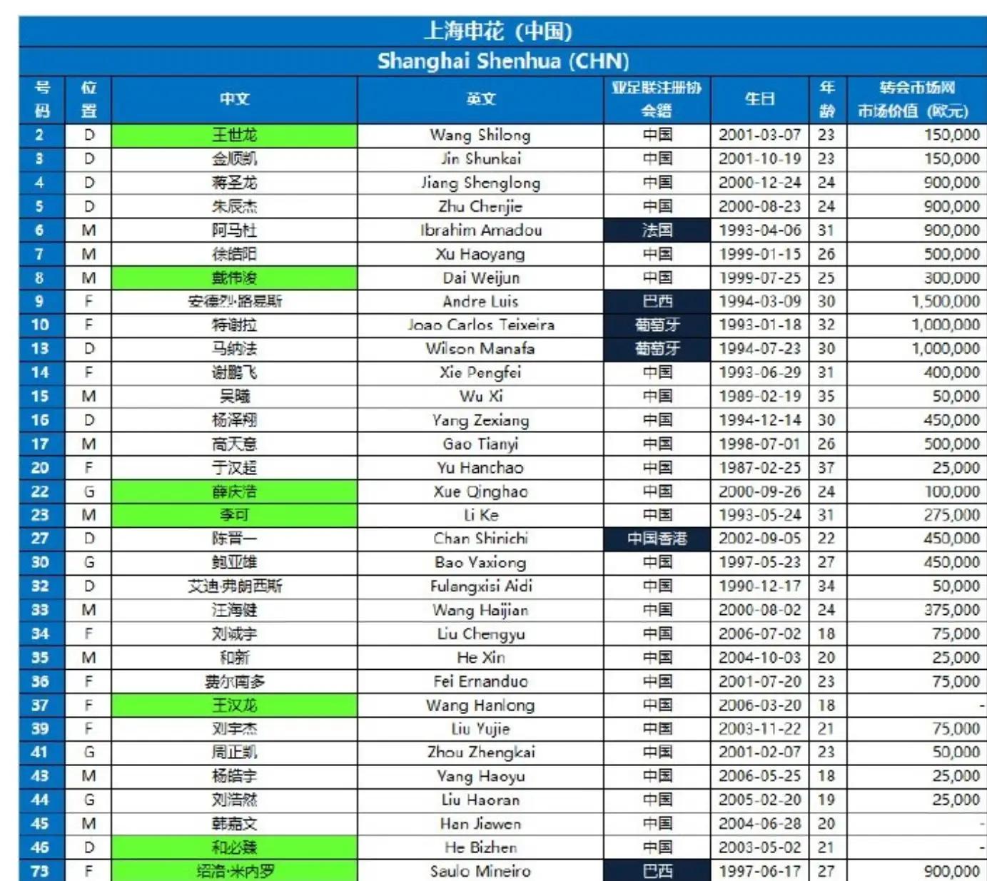 近日,德转公布上海申花亚冠报名名单,像这个名单跟2024赛季还是有点区别,比如门将方面没有马镇,多了薛庆浩。