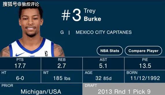 根据公开资料显示,32岁的特雷-伯克生涯为犹他爵士队、华盛顿奇才队、纽约尼克斯队、达拉斯独行侠队、费城76人队出场498次,场均20.9分钟,得到9.6分1.8篮板3.1助攻0.1封盖0.6抢断,命中率41.0%,三分命中率34.5%,罚球命中率81.0%。