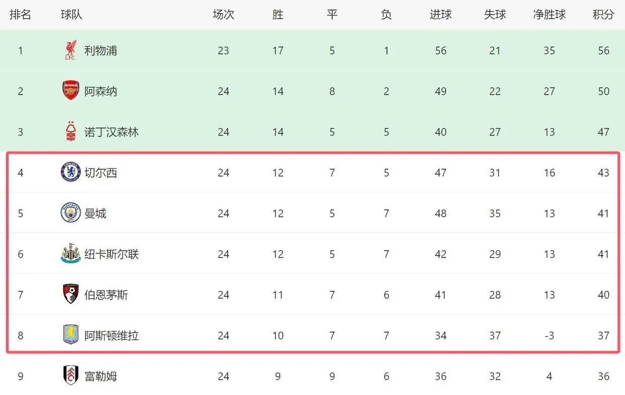 马雷斯卡在逆转对手后松了一口气。本轮比赛后,英超前四名有所变动,切尔西赢球后超越曼城,重新回到第四位。目前,切尔西以2分优势位列第四,曼城、纽卡斯尔、伯恩茅斯和维拉分别排在第五至第八位。这五支球队被认为是英超争四的主要竞争者,他们之间的分差仅为6分。尽管切尔西暂时领先,但位置并不稳固,随时可能被身后对手反超。