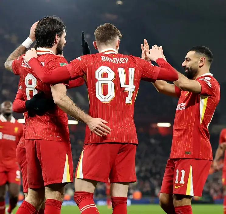 果不其然,利物浦本场比赛在安菲尔德直接开启了吊打的模式,上半场萨拉赫助攻加克波打破场上平衡,下半场埃及法老点射建功,随后索博斯洛伊和范迪克连入2球,帮助利物浦在主场4-0血洗热刺,两回合总比分4-1晋级英联杯的决赛,保住了英超、欧冠、英联杯和足总杯四线争冠的希望,其中英联杯的决赛,利物浦将会和喜鹊军团纽卡斯尔联队上演冠军争夺战。