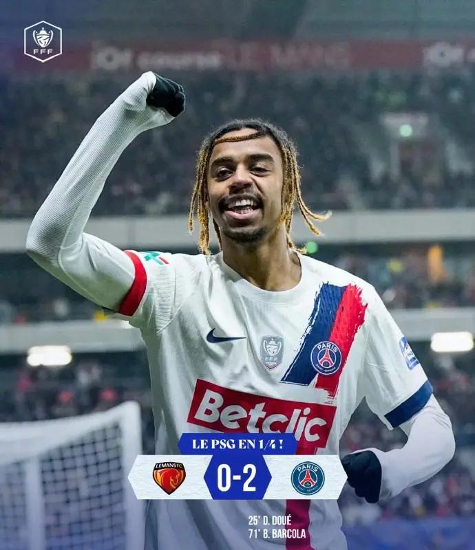 法国杯1/8决赛,巴黎圣日耳曼客场以2比0击败了勒芒队,取得了晋级8强的胜利。比赛中,杜埃和巴尔克拉分别在上半场和下半场攻入进球,帮助巴黎圣日耳曼实现了顺利晋级。数据统计显示,整场比赛巴黎控制着局面,在进攻和防守两端都表现出色。这场比赛也成为了杜埃打破僵局的关键时刻。