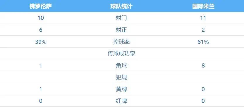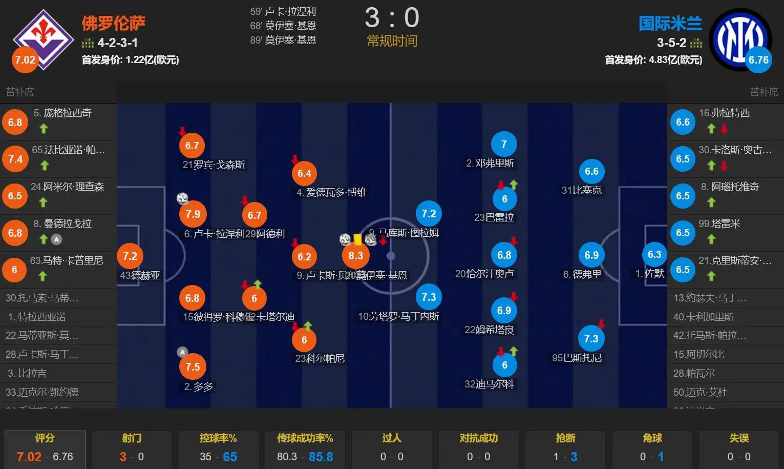 最终,佛罗伦萨3-0大胜国际米兰,佛罗伦萨豪取三连胜后重返前四,国际米兰遭遇2轮不胜&落后榜首那不勒斯多达3分。