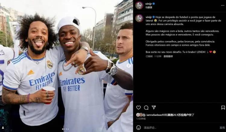 直播吧2月6日讯 36岁的马塞洛宣布挂靴退役,他在皇马和巴西的前队友维尼修斯也送上了祝福。