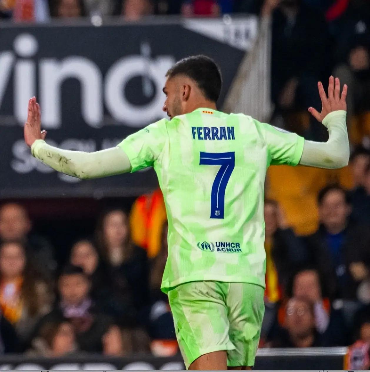第30分钟,费兰托雷斯上演帽子戏法,巴萨几乎在复制上一次对阵瓦伦西亚的惨案。