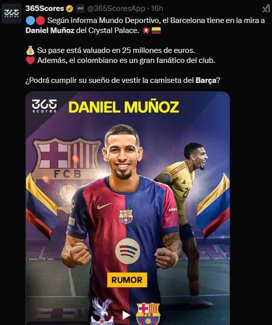北京时间2月6日,据哥伦比亚报道,巴塞罗那计划收购水晶宫28岁后卫穆尼奥斯,这则消息给巴萨带来了喜讯,也为球队的正式复兴描绘了一幅美好蓝图。